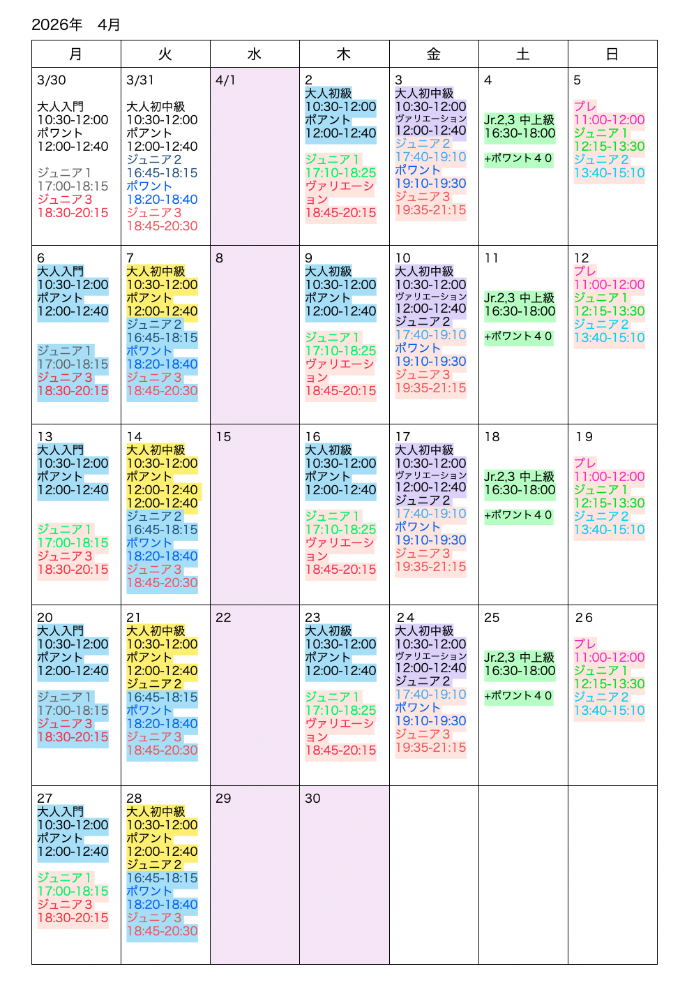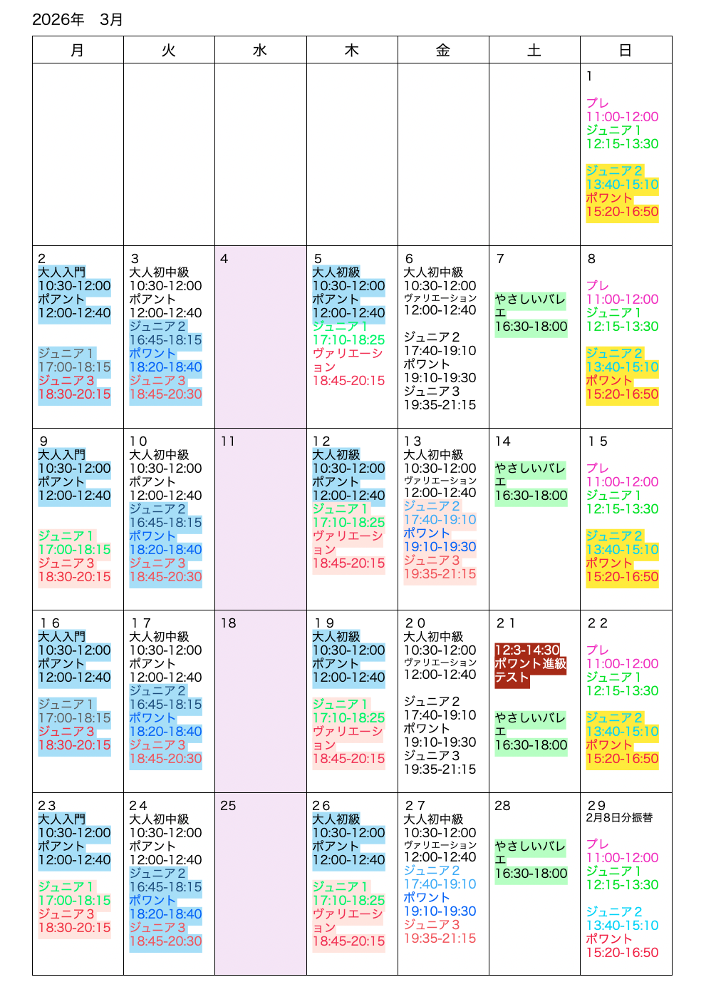 ※3月30、31日は、2026年の振替調整日です。8月のお盆周辺にある休講分の振替となっております。