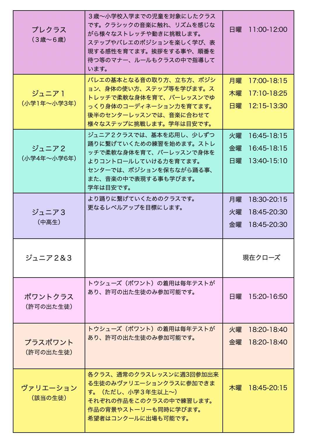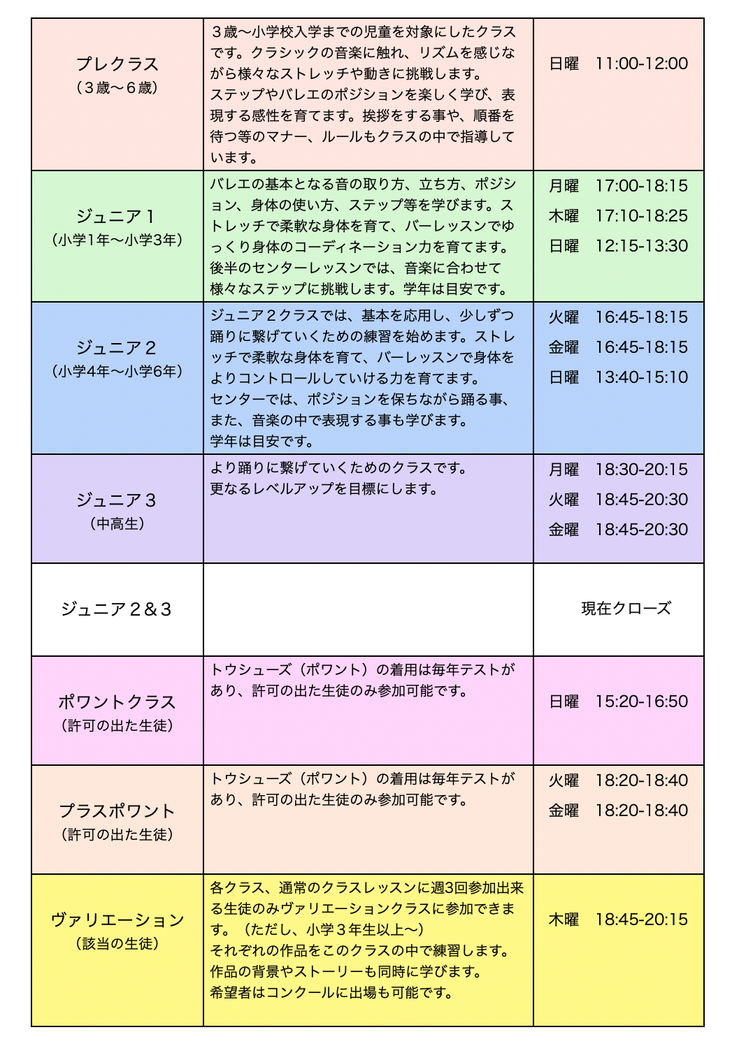 ※お休みをした場合の振替レッスンは1月〜12月の間で有効です。